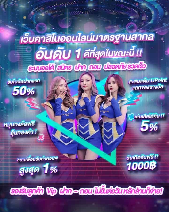 เริ่มต้นการเดิมพันใหม่ Ultraclub เว็บพนันออนไลน์ที่ให้บริการคาสิโนออนไลน์ครบวงจร บาคาร่า สล็อต ฟุตบอล ออนไลน์ รวมทุกค่ายในเว็บเดียว สมัครสมาชิกฟรี ไม่มีขั้นต่ำ สมัครง่าย เล่นได้ครบทุกเกมยอดนิยม ทำเงินง่าย ได้กำไรจริง อัลตร้าคลับ88 ที่คนเล่นเยอะที่สุดของประเทศไทย ตอบโจทย์ทุกการลงทุนที่คุ้มค่า เล่นเกมส์ สล็อต บาคาร่า ฟุตบอล ออนไลน์ รวมทุกค่าย ในเว็บเดียว Ultraclub คาสิโนไม่ผ่านเอเย่นต์ เว็บตรง มั่นคง เดิมพันง่าย ปลอดภัย และไม่มีประวัติโกง